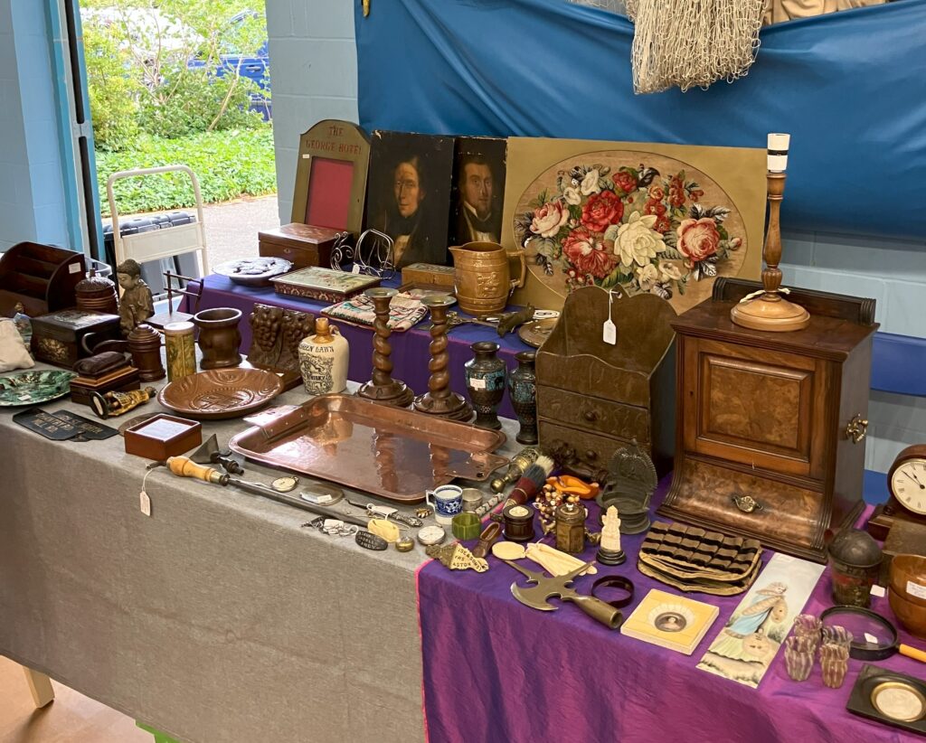 The fair has Silver, furniture, ceramics, glass, clocks, jewellery, tools, books, postcards and Vintage fashion etc with prices from £3 to £5000. You won't be disappointed with the choice of refreshments available at our fair. Breakfast available from 8am, including bacon and sausage sandwiches. Hot lunches start at 11:30 until 13:30pm, including a roast, quiches and jacket potato with various fillings. Sausage rolls, Pastries and Slices make a good snack while you browse. Barista Coffee and homemade cake available throughout. All Refreshments are reasonably priced and you get a good helping of freshly prepared food.